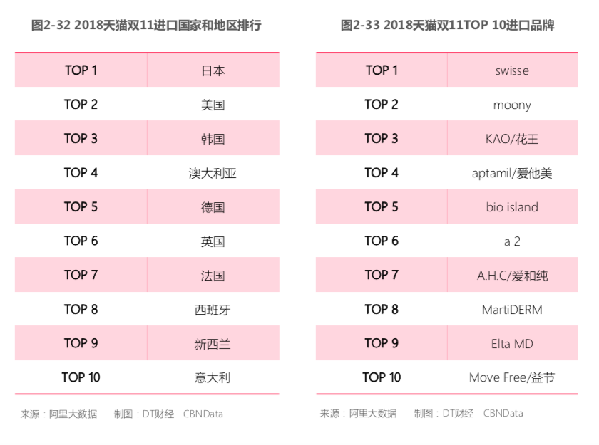 数据显示,2017年天猫双11当天,超过1000万名消费者通过天猫国际购买跨境商品。而今年天猫双11活动中,超过四成消费者购买国际品牌。日本、美国、韩国、澳大利亚、德国、英国、法国、西班牙、新西兰、意大利领衔前十大进口国。
