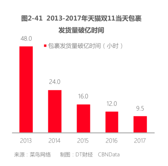 智慧物流也在提升用户消费后的收货体验。今年天猫双11物流订单量定格在10.42亿个,宣告智能物流骨干网正式进入10亿时代。但送达1亿个包裹的时间却越来越快,比去年提速约5小时。